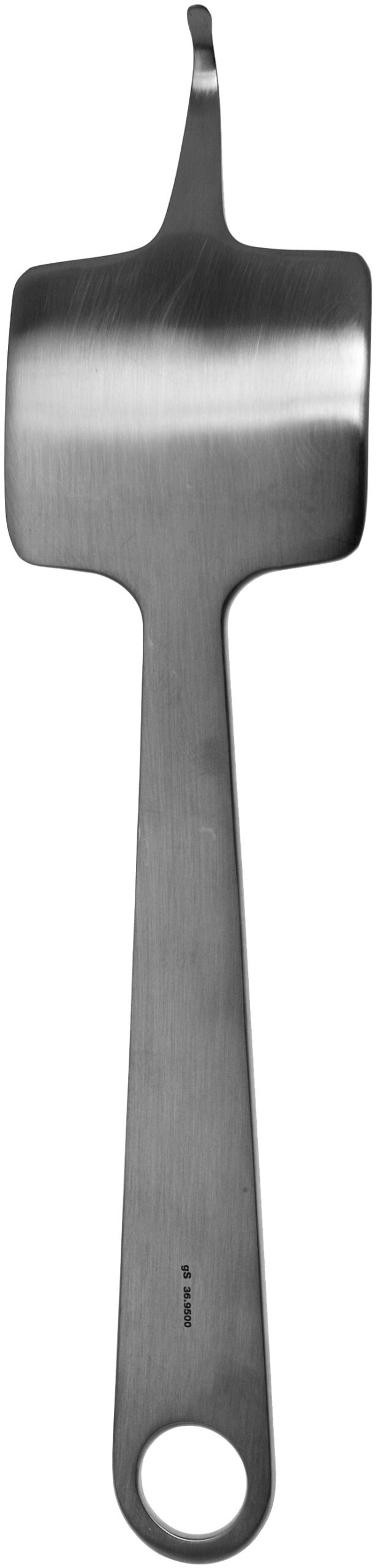 Hohmann Retractor 10″ x 14mm, long narrow rounded end, bent handle, 1 hole