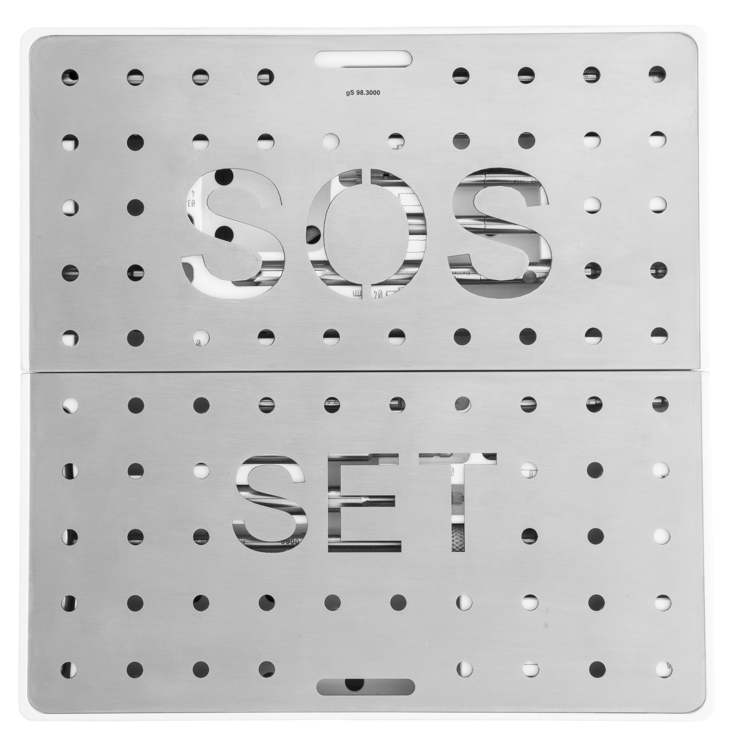 SES (Screw Extraction Set) Tray 8 1/4", stainless steel cover, plastic tray, white quantity