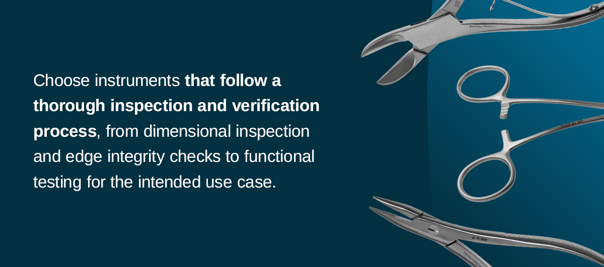 Choose instruments that follow a thorough inspection and verification process, from dimensional inspection and edge integrity checks to functional testing for the intended use case.